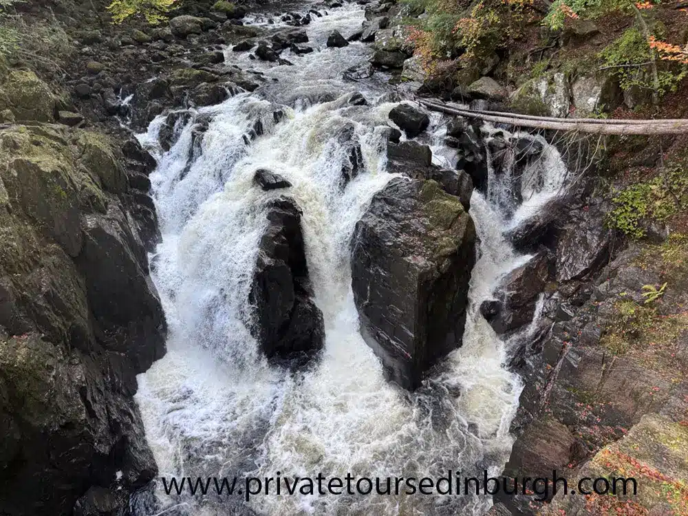North of Edinburgh, near Dunkeld, lies the Hermitage — one of Scotland’s most spectacular autumn destinations. This ancient forest, planted in the 18th century by the Dukes of Atholl, bursts into life each October. Towering Douglas firs and oaks frame the roaring River Braan, while the iconic Ossian’s Hall overlooks the Black Linn Falls — a dramatic cascade that captures the raw energy of Scotland’s natural landscape. Autumn tours from Edinburgh often include a peaceful woodland walk here, giving visitors a chance to breathe in the crisp air and feel immersed in nature’s seasonal transformation. For photographers, the contrast between the dark waters and fiery foliage offers endless creative possibilities.